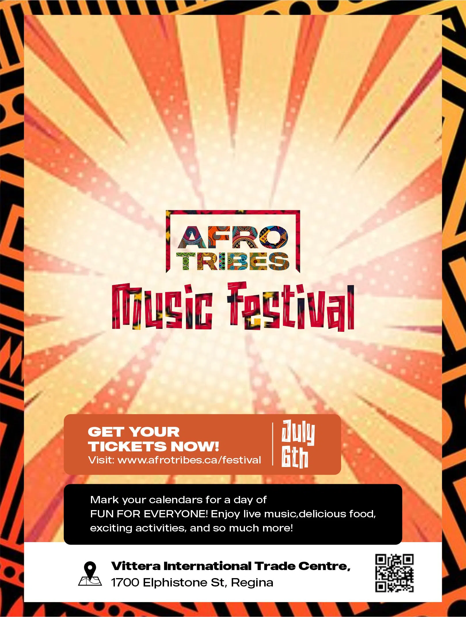 The Afro Tribes Music Festival is a vibrant celebration of African music, culture, and community, taking place on July 6th, 2024, at the Viterra International Centre. the festival features electrifying performances by renowned African artists, including Afrobeats sensation Spyro, alongside other talents, showcasing a diverse range of musical genres from across the continent. Attendees will enjoy the richness of African rhythms, dance, and tradition, creating an unforgettable experience of connection and celebration. Get your tickets at www.afrotribes.ca/festival